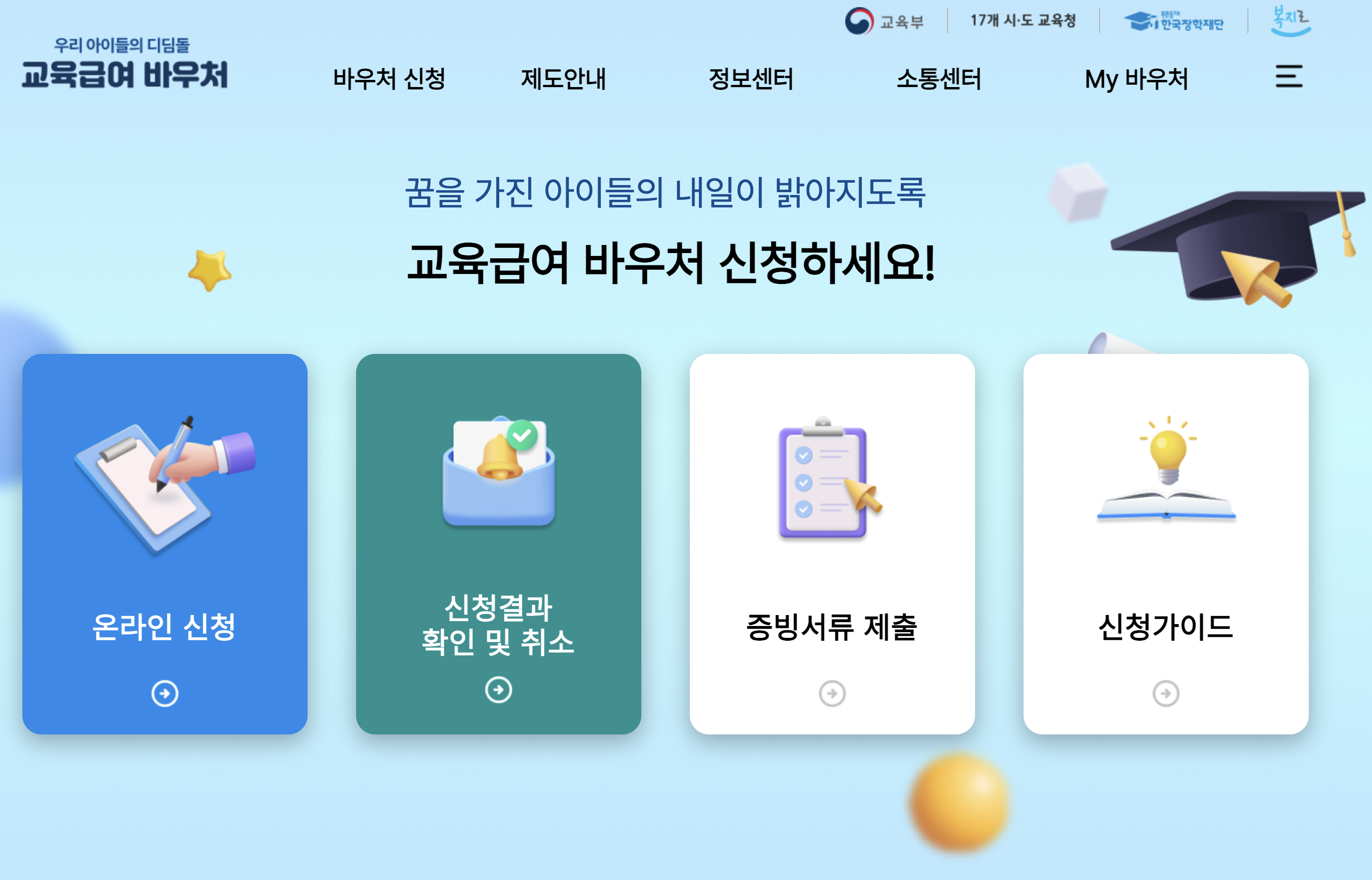 교육부와 17개 시도교육청, 한국장학재단에서 지원해주는 사업으로 꿈을 가진 아이들의 내일 밝아지도록 경제적 부담을 덜어주기 위해 시행된 사업입니다.