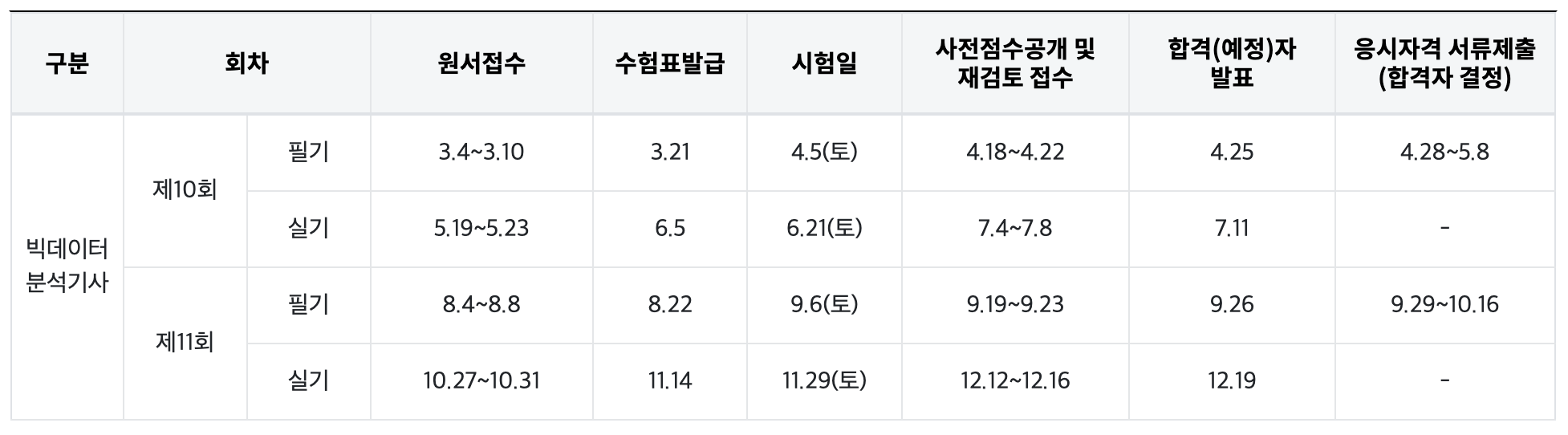 2025년에는 빅데이터분석기사 시험일정은 상반기, 하반기 총 2회차입니다