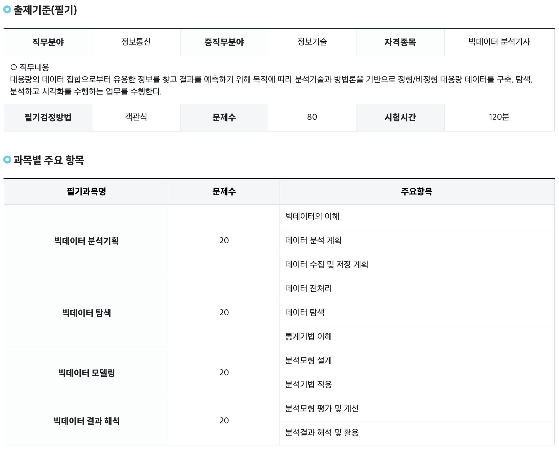 2025년 빅데이터 분석기사 출제문항 및 합격기준